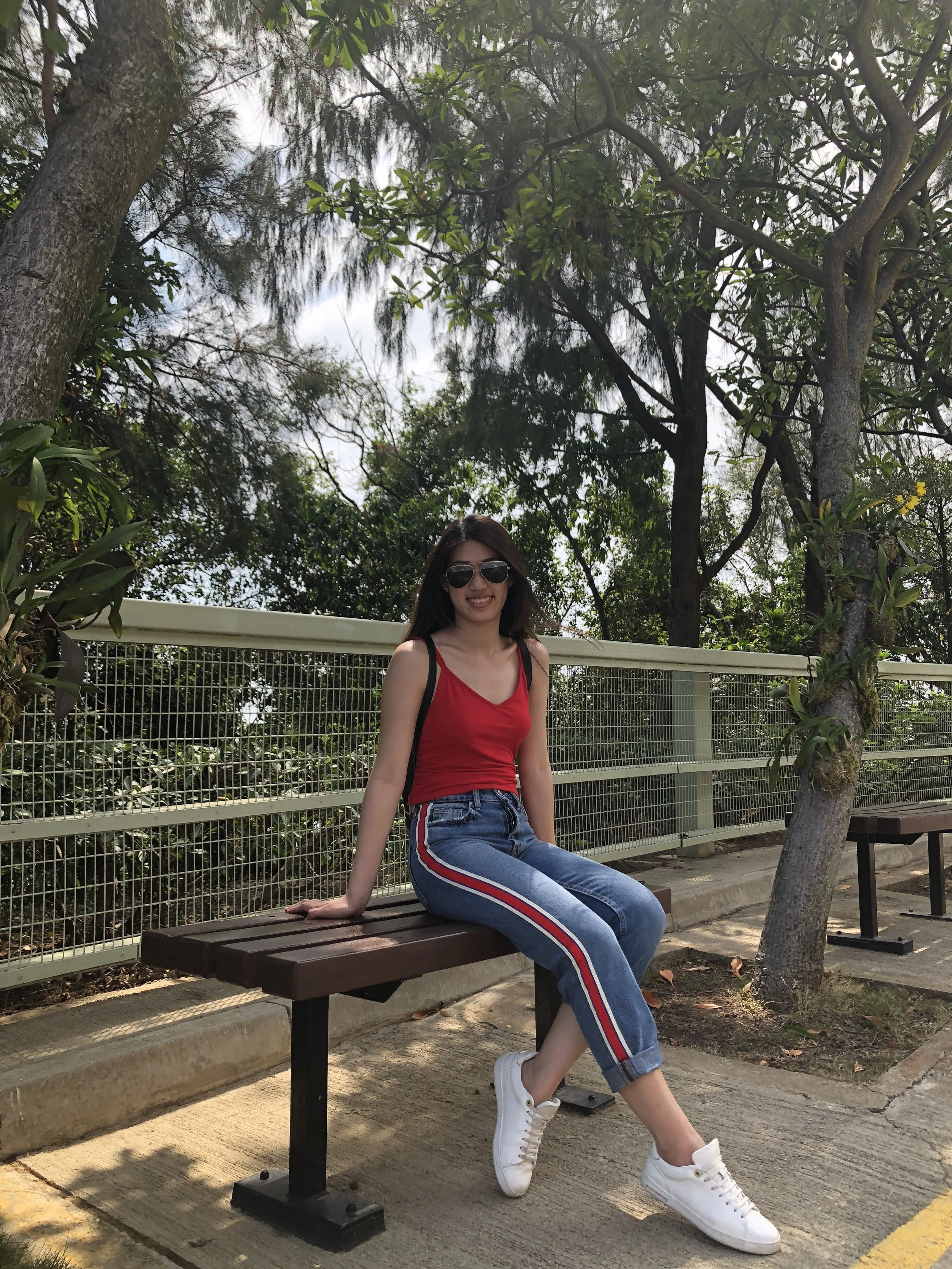 I really like this outfit, it's one of my favorite outfits that I wore to my last Hong Kong trip. I thought the red tank top complemented the pants really well and it was a great time to wear this top because it was quite hot that day. The sneakers also looked great on the outfit, giving it a more relaxed and casual look perfect for a day at the park.